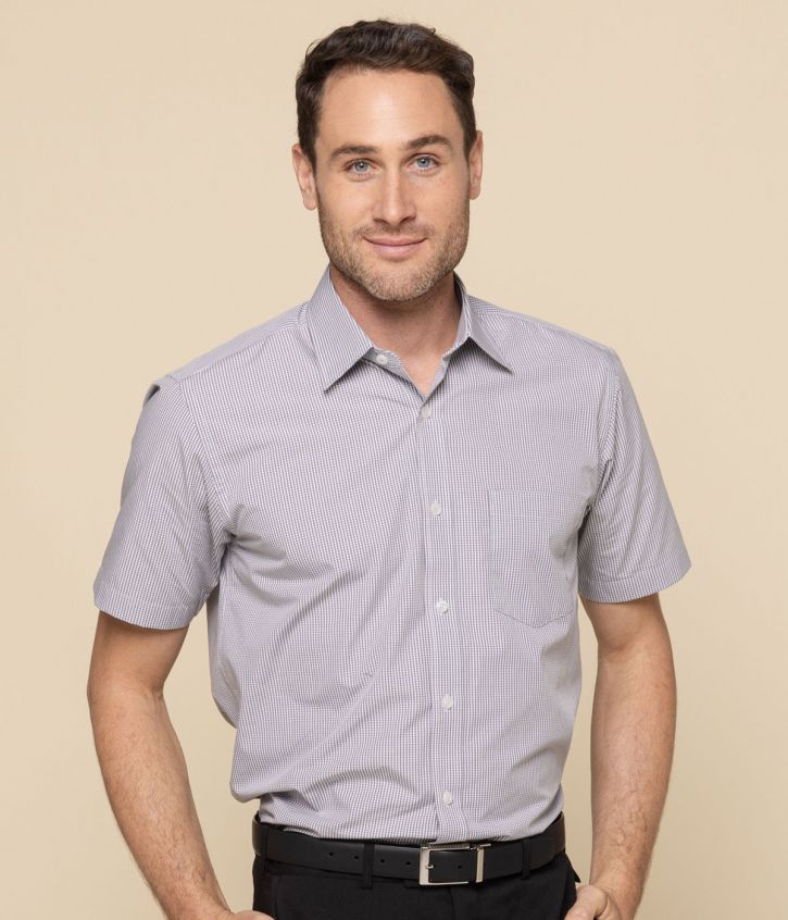 2. SKU: SH817-meekashire Mens Micro Check Short Sleeve Shirt